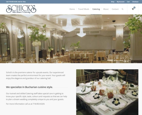 Brooklyn-based Schick’s Kosher Travel Meals provides delicious packaged meals and exemplary customer service. They also offer premiere caterer for upscale events. Schick’s replaced their outdated site with this redesign, which features online shopping of their products.