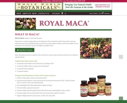 Whole World Botanicals partners with native communities in Peru to provide organic and wild-crafted, therapeutic botanical concentrates, extracts, teas, and specialty products. WCS provides design and maintenance services for the WWB e-commerce website and just completed a complete redesign of their website.